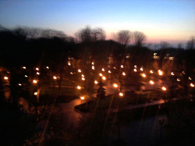 Das Zimmer im Hotel in dem ich untergebracht war schaute auf den Beginn der Fußgängerzone von Odessa und einen Park mit Pavillon. Ich entschied mich auch hier vom Fenster aus fast nächtlich aufzunehmen.