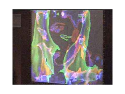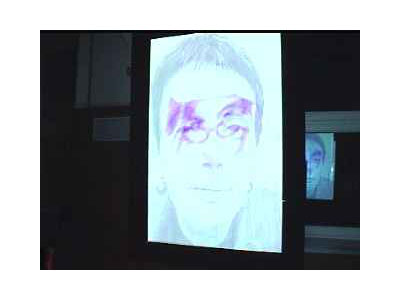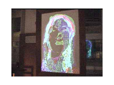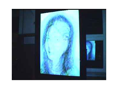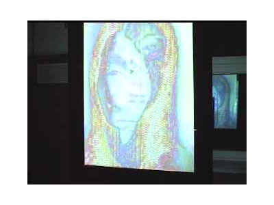 Verwoben werden die Portraits der Stimmen und Gesichter von Andrea Sodomka, Netochka Nezvanova, Tatjana Komarova und Elisabeth Schimana. Betrachtet durch das spektrale Mikroskop wird das archaischste aller Instrumente, die menschliche Stimme, in ihre Fasern zerlegt, und mittels Morphing entsteht die Stimme der fiktiven Futuristin. Nicht in Stein gemeißelt und nicht in Eisen gegossen, temporär und flüchtig ist der Projektionsstrahl, der die Büste der Futuristin für die Dauer der Perfromance entstehen lässt.