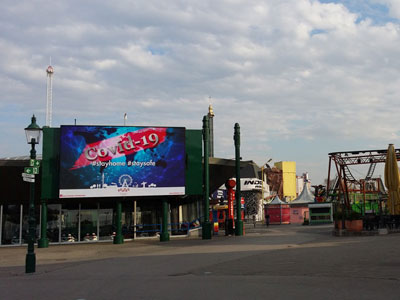 Ich nehme die U-Bahn, kaum Menschen, es ist leicht Abstand zu halten. Immer diese „komm mir nicht zu nahe“ Blicke. Am Eingang des Wurstelpraters setze ich mich auf eine Bank, vor mir eine riesige Leuchttafel mit Covid-19 Informationen. Auch hier einzelne Stimmen, Fahrräder... Ich spaziere weiter hinein in den Wurstelprater, erinnere mich an all diese mechanischen Klänge und werde gestoppt und des Ortes verwiesen. Privatsecurity, erst da wird mir bewusst, dass ich mich auf Privatgelände befinde. Auf Umwegen schleiche ich mich nochmals hinein, der Wurstelprater bekommt eine gewisse Zärtlichkeit.