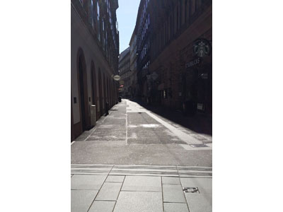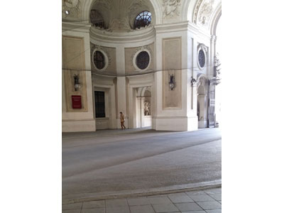 Es ist windig, es nieselt, der Bus in die Innenstadt ist fast leer. Der erste Tag dieser eigenartigen Ruhe. Ich begebe mich in die Michaelerkuppel, jede Bewegung, also jeder Klang, wird zu einem Einzelereignis, geht nicht unter in den Massen, einzelne Schritte, ein Fahrrad....