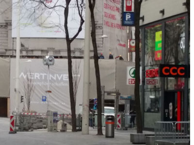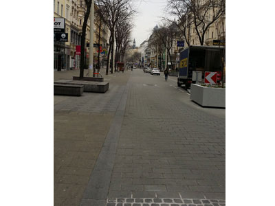 Ich spaziere auf der Mariahilfer Straße. Vereinzelte Regsamkeit, auch hier bekommt jede einzelne Regung Bedeutung. Ein Koffer rollt, ein Telefongespräch, Vögel....und Baustellen. Die wurden beim Lockdown wohl vergessen.