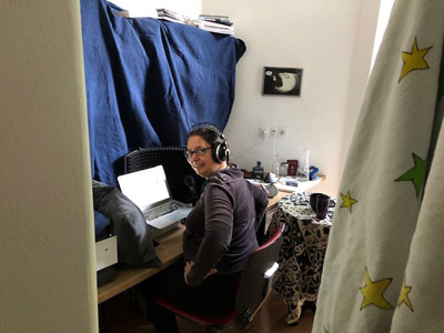 In der Ruhe der Stadt tobt im Hintergrund der unhörbare Kampf mit dem für ihre Wirt*innen totbringenden Virus, während die geliebten, gewünschten Klänge meiner Viren – der Musiker*innen – und meiner elektronischen Partiturklänge – der Wirtin – akustisch in den Vordergrund treten.